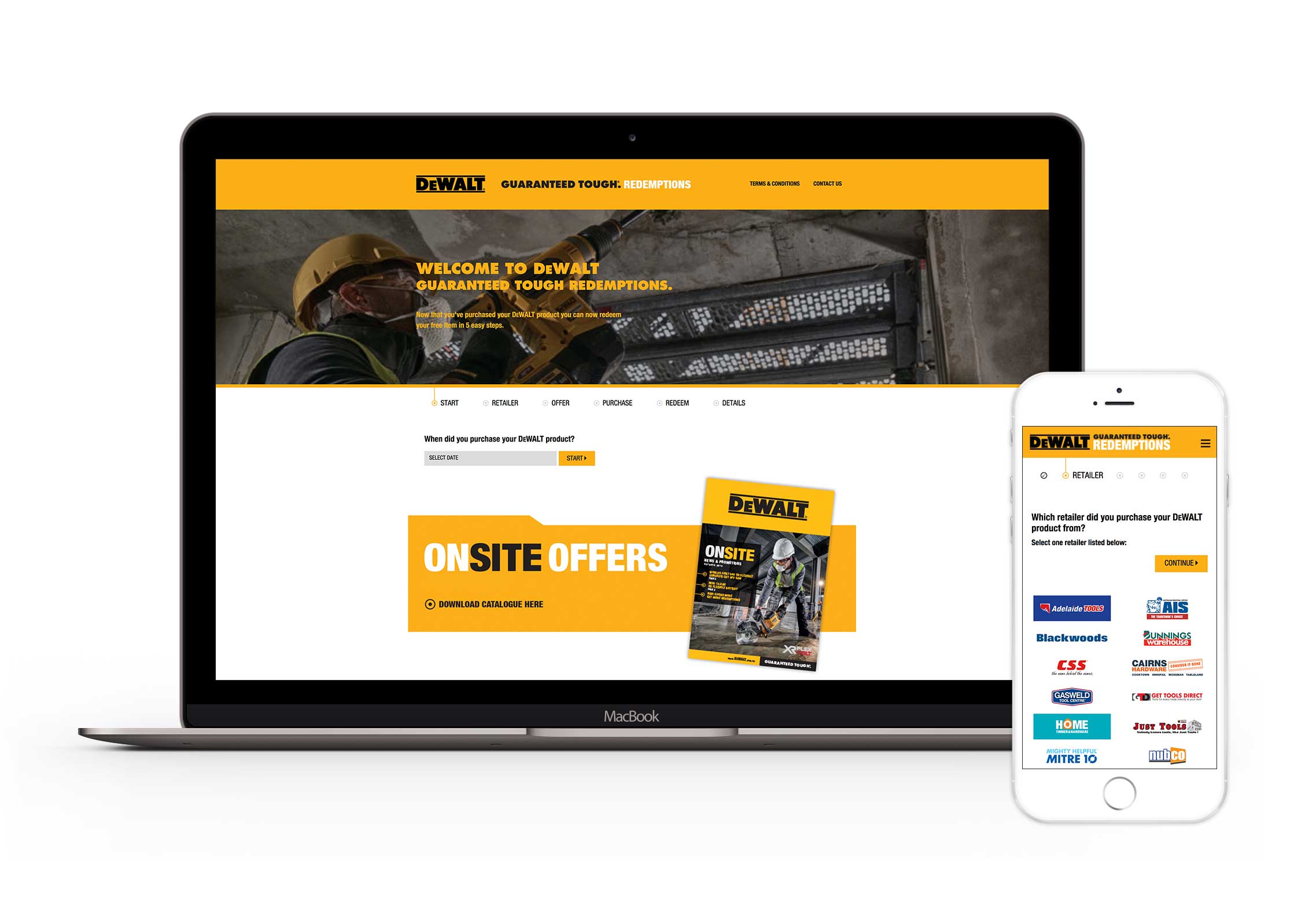 This site was designed and built to achieve two key goals. Firstly to ensure the back end platform and custom built modules were future proofed to be able to handle all manner of redemption offers. Secondly to make it as easy as possible for tradies to redeem products on mobile devices whilst on the go. By achieving these two goals, we increased the ease & speed with which tradies could redeem online, increasing their satisfaction. The follow on effect of this was a massive reduction in user enquiry and manual processing client side, saving time and money.